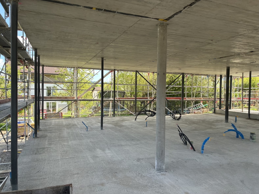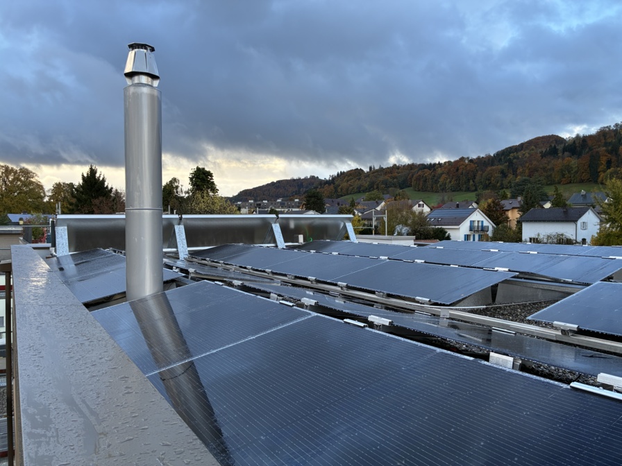 Das Gebäude wird in Hybridbauweise mit nichttragenden Aussenwänden in Holzbauweise und vertikaler Holzschalung als Fassade errichtet. Erdsonden-Wärmepumpe als Heizsystem, Warmwasserkollektoren, Photovoltaikanlage, Regenwassernutzung: Dies sind die Hauptpfeiler der erneuerbaren Energienutzung des Ersatzneubaus.
