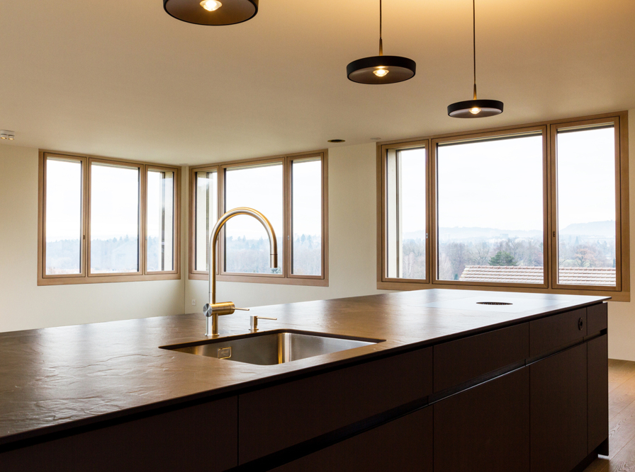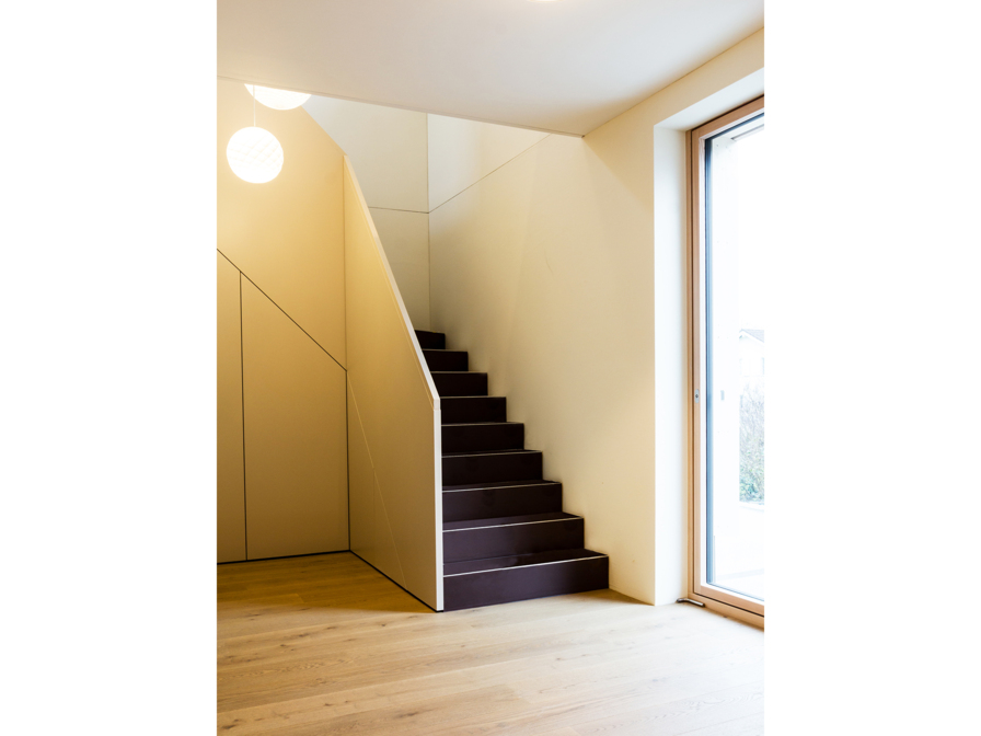 Um das Einfamilienhaus in die nächste Generation zu führen, entschied die Bauherrschaft ein Mehrfamilienhaus für sich und eine zusätzliche Familie zu erstellen. Eine spätere Aufteilung in 3 Familienwohnungen wird durch das aussenliegende Treppenhaus ermöglicht.