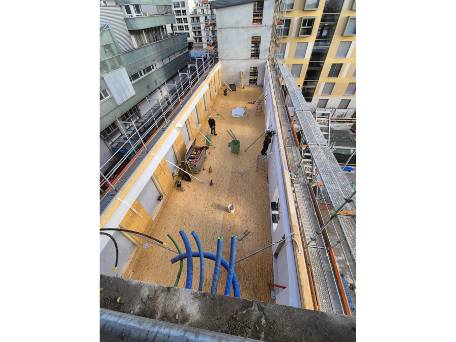 Der Nachhaltigkeit wird innerhalb des Bauprojekts eine grosse Bedeutung zukommen. Der zeitgemässe hochgedämmte Holzelementbau sorgt sowohl in der Erstellung als auch im Betrieb für einen tiefen CO2-Fussabdruck. Zusätzlich führt die Dachbegrünung zu einer reduzierten Erwärmung im Sommer und zu einem verminderten Energiebedarf für die Kühlung. Die Biodiversität hat auf der Parzelle des Bauprojekts eine grosse Bedeutung, indem Bäume, Sträucher und weitere Ökostrukturen angepflanzt werden. Die Wärmeerzeugung des Gebäudes erfolgt mittels Fernwärme aus der Energiezentrale Forsthaus. Eine hochgedämmte Gebäudehülle, zeitgemässe, energieefiiziente Beleuchtungsmittel, Nachtauskühlung und eine intelligente und bedarfsorientierte Steuerung der Haustechnik sorgen für eine Energiebilanz, die weit unter den gesetzlichen Anforderungen liegt. Zudem trägt das Gebäude aktiv zur eigenen Energieproduktion bei. Es ist geplant, das Dach des Bauprojekts mit Photovoltaik-Anlagen mit einer Modulfäche von rund 130 m2 zu bestücken. Die geschätzte Jahresproduktion liegt bei 23 786 kWh. Der eigenproduzierte Sonnenstrom soll zusammen mit einem 2nd live Batteriespeicher u.a. auch für das öffentliche Laden von E-Bikes benutzt werden.