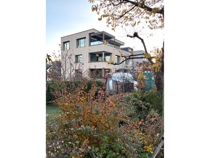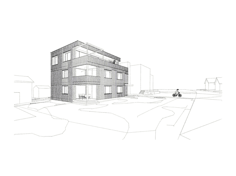 Um das Einfamilienhaus in die nächste Generation zu führen, entschied die Bauherrschaft ein Mehrfamilienhaus für sich und eine zusätzliche Familie zu erstellen. Eine spätere Aufteilung in 3 Familienwohnungen wird durch das aussenliegende Treppenhaus ermöglicht.